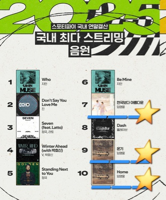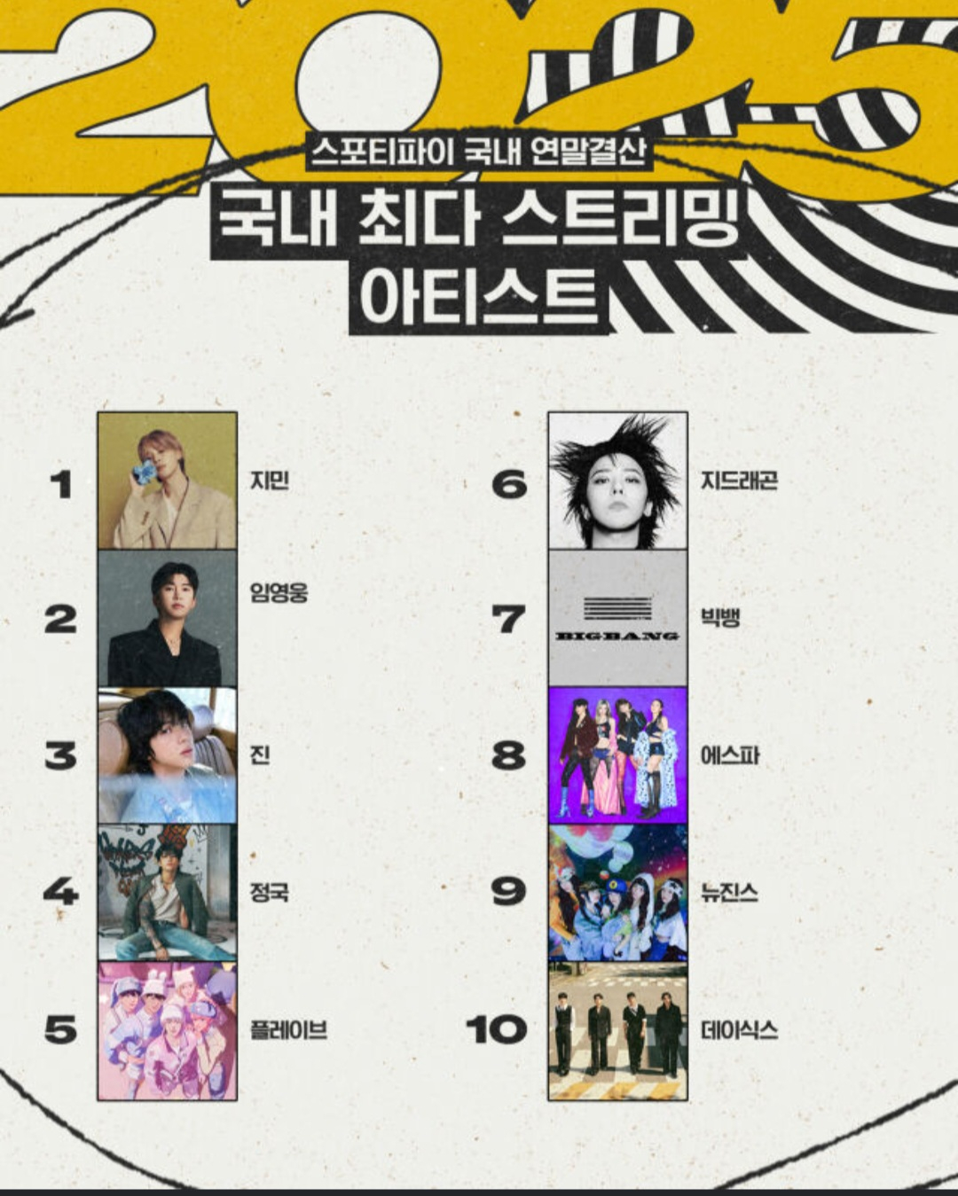 임영웅, 2025년 스포티파이 국내 최다 스트리밍 K팝 아티스트 톱2..최다 스트리밍 음원 톱10에 무려 3곡!