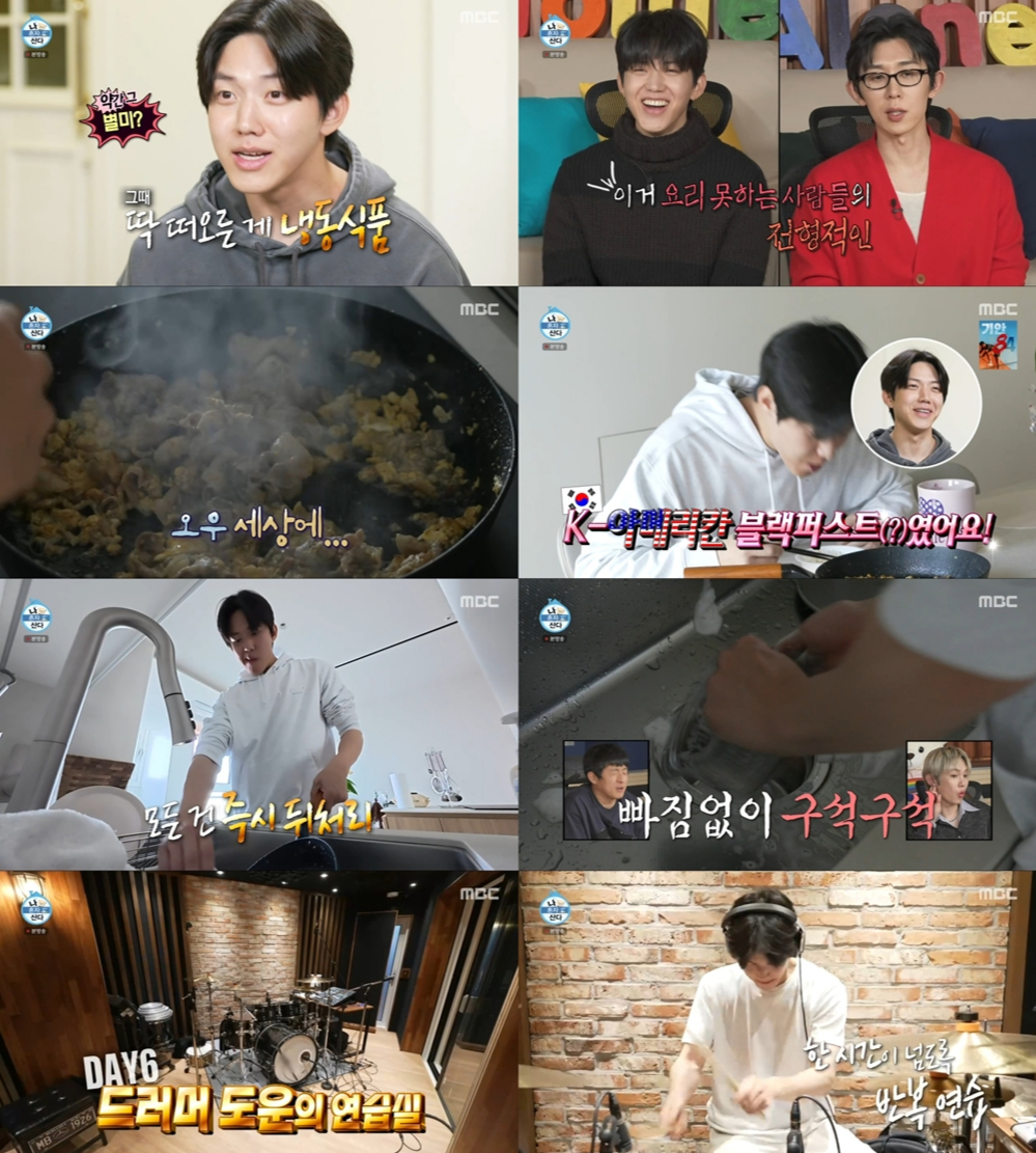 이날 방송에선 바쁜 스케줄을 마친 뒤 여유를 즐기는 데이식스 멤버 도운의 일상도 공개됐다. 도운은 이사 후 처음으로 주방을 사용한다며 자신만의 자취 요리인 'K-아메리칸 블랙퍼스트(?)'를 선보였다. 대패삼겹살에 달걀과 핫소스를 곁들인 메뉴였다. 코드 쿤스트는 도운이 요리를 시작하자마자 "이거 요리 못 하는 사람들의 전형적인 메뉴"라며 웃음을 자아냈고, 요리의 비주얼은 다소 충격적이었지만, 설거지부터 싱크대 청소까지 깔끔히 마무리하는 도운의 모습에 멤버들은 감탄했다.