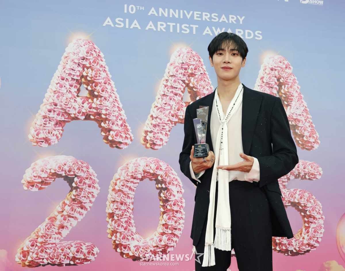 그룹 킥플립이 6일 대만 가오슝 내셔널 스타디움에서 진행된 스타뉴스 주최 '10주년 아시아 아티스트 어워즈 2025(10th Anniversary Asia Artist Awards 2025, '10주년 AAA 2025')에서 AAA Best New Artist상을 받고 수상소감을 말하고 있다. 12월 6일~7일 양일에 걸쳐 가오슝 내셔널 스타디움에서 펼쳐지는 '10주년 아시아 아티스트 어워즈 2025(10th Anniversary Asia Artist Awards 2025, '10주년 AAA 2025')'와 페스타 'ACON 2025'는 MTN(머니투데이방송)과 위버스(Weverse)를 통해 각각 TV와 온라인 스트리밍으로 생중계 된다. /2025.12.06