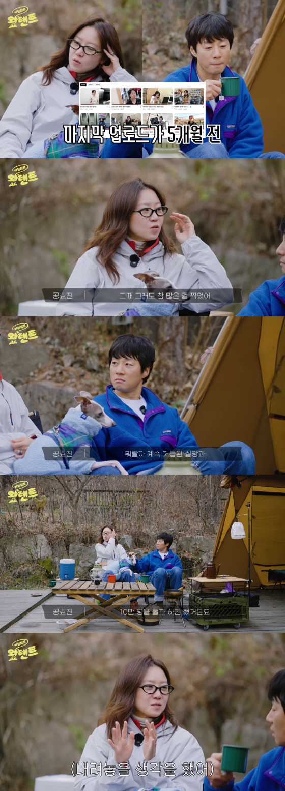 공효진은 "'이렇게 했는데 10만이 되다니'라고 생각했다. 그러다 업로드 없이 시간이 지나면서 '안녕'을 생각하기도 했는데 (구독자가) 그대로더라"고 구독자들에게 고마움을 전했다.