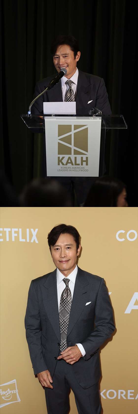배우 이병헌이 7일(현지시각) 미국 로스앤젤레스(LA)에서 열린 'KALH'(코리안 아메리칸 리더스 인 할리우드, Korean American Leaders in Hollywood·KALH)의 초대 수상자로 선정되며 글로벌 영향력을 다시 한번 입증했다. 이병헌을 비롯해 영화 '어쩔수가없다' 박찬욱 감독, 넷플릭스 '케이팝 데몬 헌터스' 매기 강 감독이 수상의 영예를 안았다.