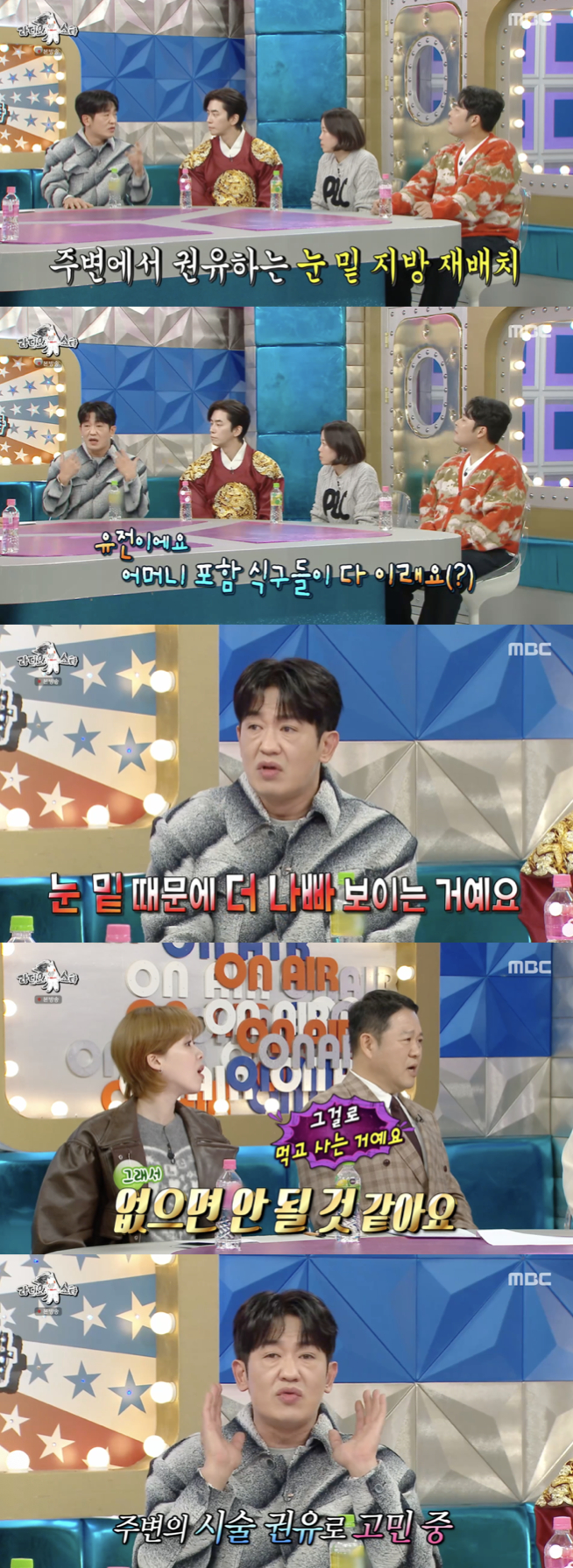 배우 허성태가 눈밑지방재배치 수술 권유를 여러 차례 받았다고 털어놨다.10일 방송된 MBC 예능 프로그램 '라디오스타'는 '천의 얼굴 내가 누군지 아니?' 특집으로 꾸며졌으며, 허성태, 신성록, 정이랑, 김해준이 출연해 솔직한 토크를 나눴다.