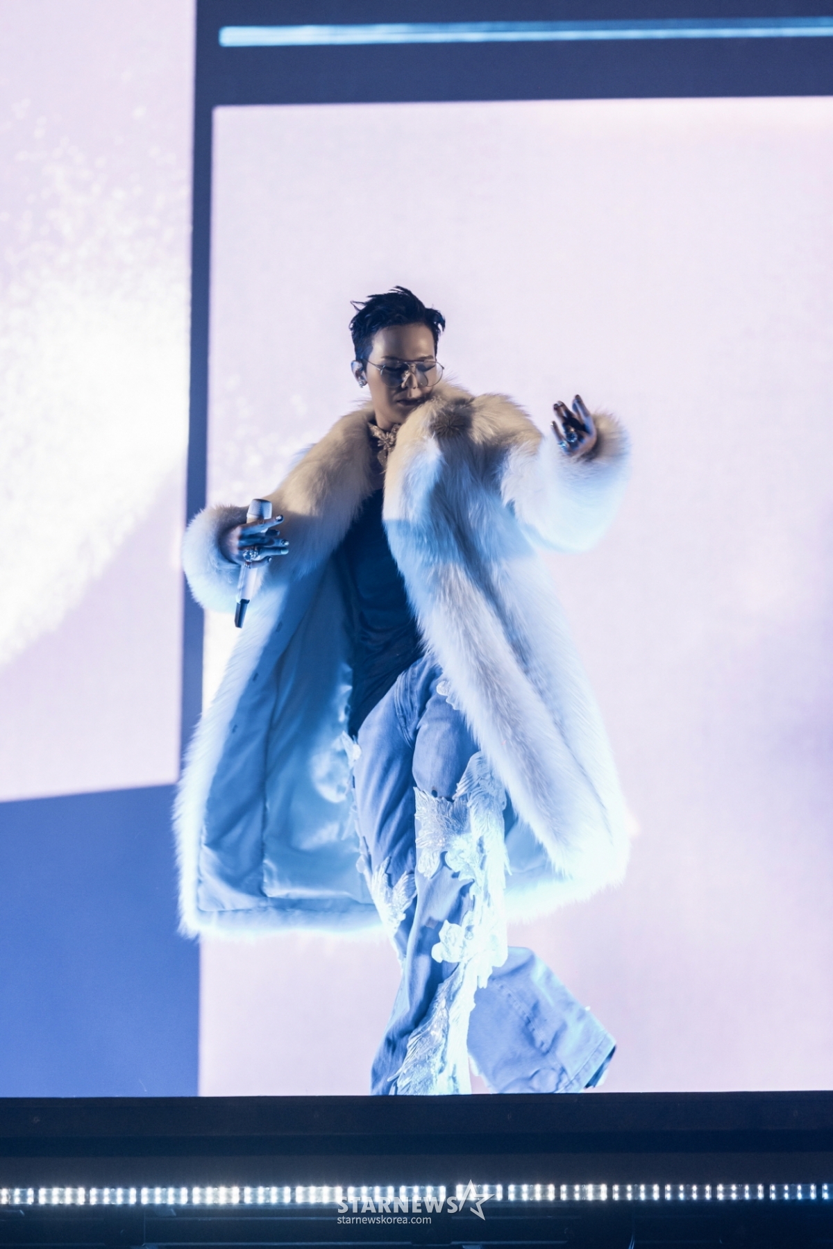 이날 지드래곤은 지난해 발매한 '파워(PO₩ER)'로 포문을 열었다. 연달아 '홈 스위트 홈(HOME SWEET HOME)' 무대를 선보인 그는 태양, 대성과 함께 등장했다. 세 사람의 에너지 넘치는 합동 무대에 팬들의 환호를 자아냈다.