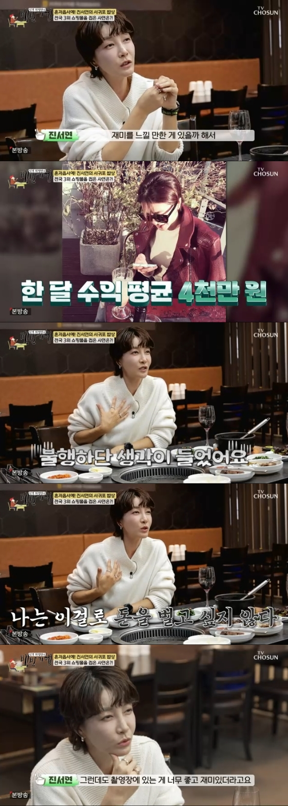 진서연은 "그 심정을 잘 모르시겠다. 저는 괴롭진 않았다. 내가 연기 아니면 재미를 느낄 만 한 게 있을까 해서 대학교 때 쇼핑몰을 운영했었다. 한 달에 4천만원을 벌었다"라고 밝혀 놀라움을 자아냈다.