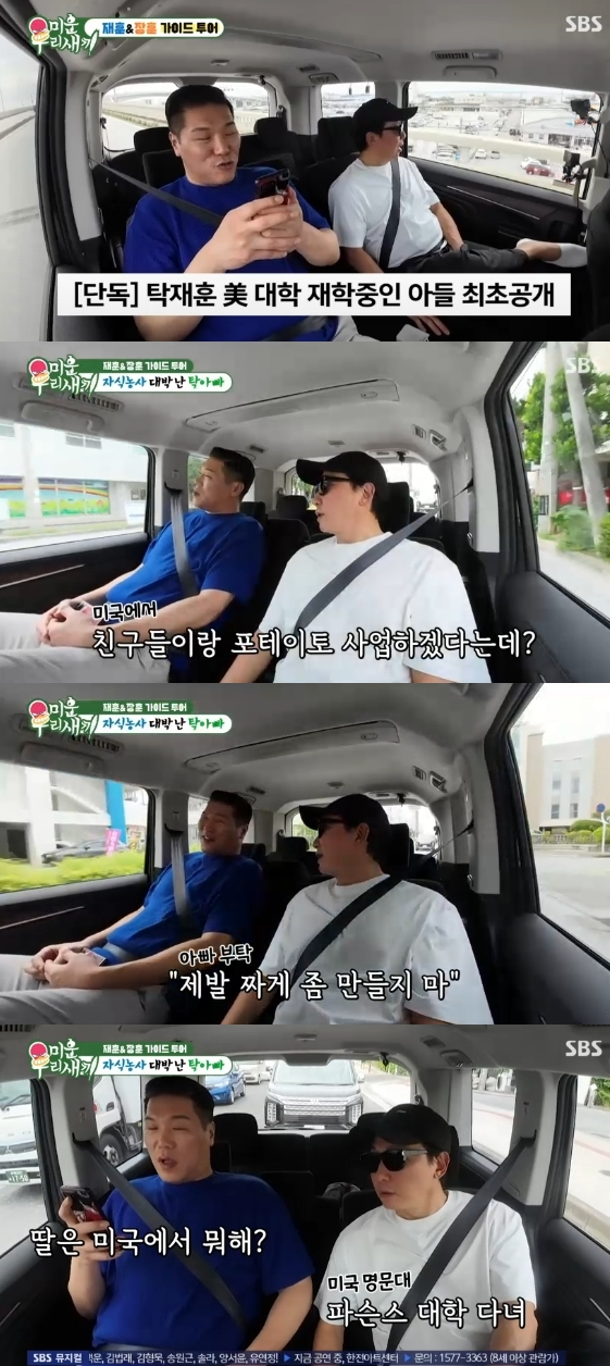 방송인 탁재훈이 미국 명문대에 재학 중인 자녀들의 근황을 공개했다. 14일 방송된 SBS 예능 프로그램 '미운 우리 새끼'에는 지난주에 이어 모벤져스와 함께 일본 오키나와로 떠난 서장훈, 탁재훈의 모습이 그려졌다.