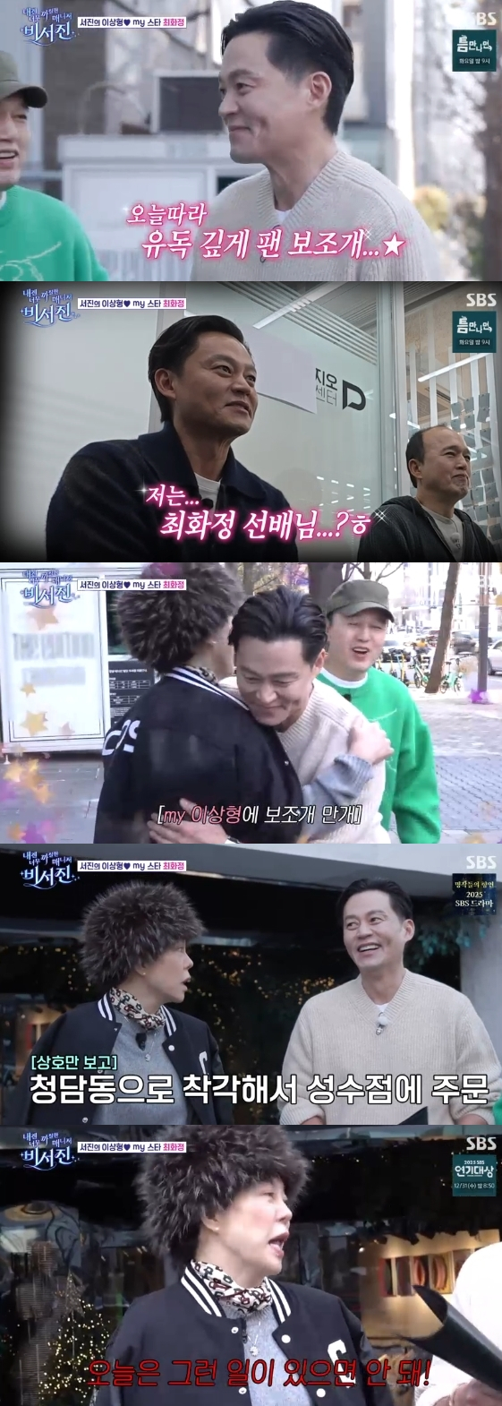 배우 이서진이 오랜 이상형인 최화정을 보고 보조개 미소를 감추지 못했다. 19일 방송된 SBS 예능 프로그램 '내겐 너무 까칠한 매니저 - 비서진'에는 최화정이 'my 스타'로 출연해 러블리한 일상을 공개했다.