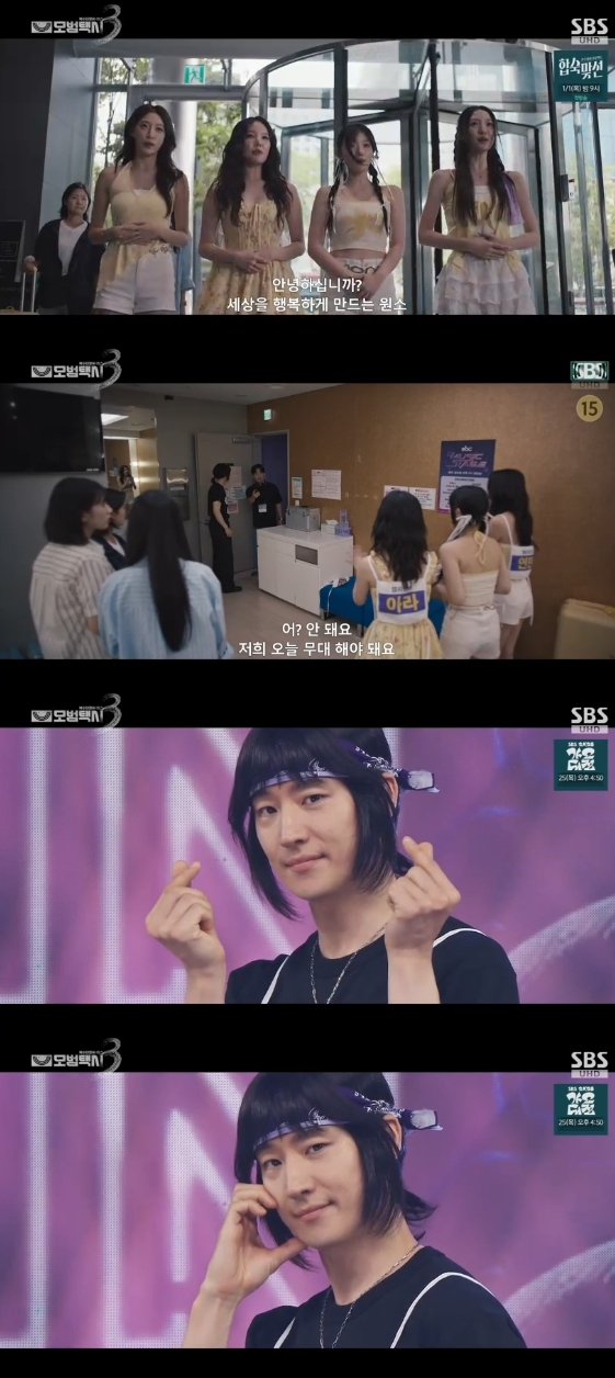 배우 이제훈이 완벽한 혼성그룹으로 거듭났다. 20일 방송된 SBS 금토 드라마 '모범택시3'에는 걸그룹 연습생에게 스폰서 만남을 강요하고 극단적 선택까지 이르게 한 연예 기획사 대표 강주리(장나라 분)를 참교육하기 위해 매니저로 위장 취업한 김도기(이제훈 분)의 모습이 그려졌다.