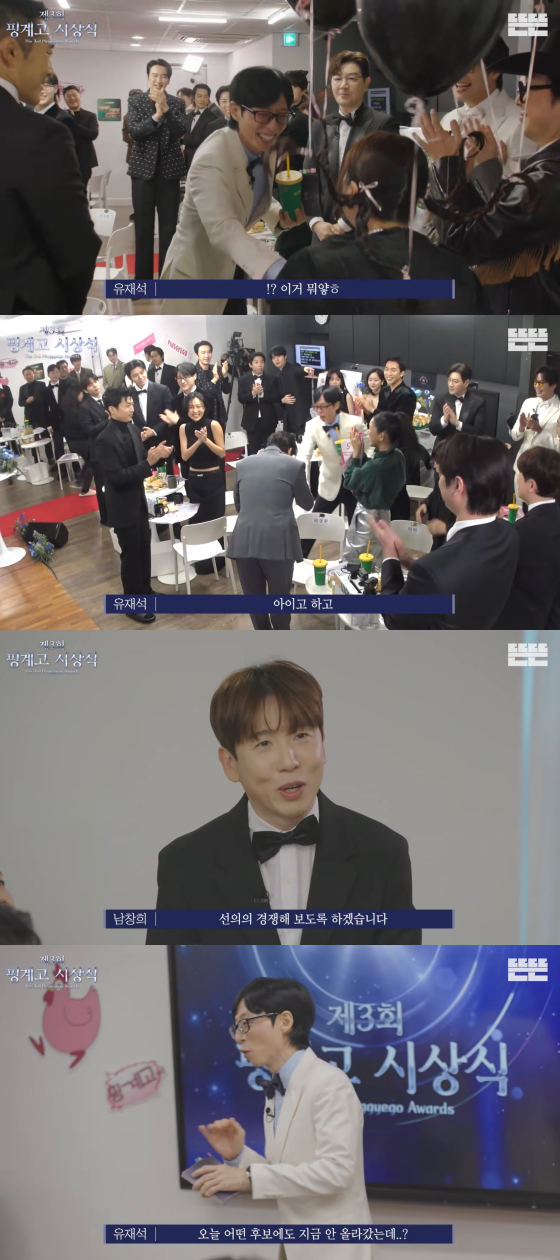 코미디언 조세호가 빠진 '핑계고' 시상식에서 유재석이 남다른 소회를 밝혔다.21일 유튜브 채널 뜬뜬에는 '제3회 핑계고' 시상식 영상이 게재됐다.