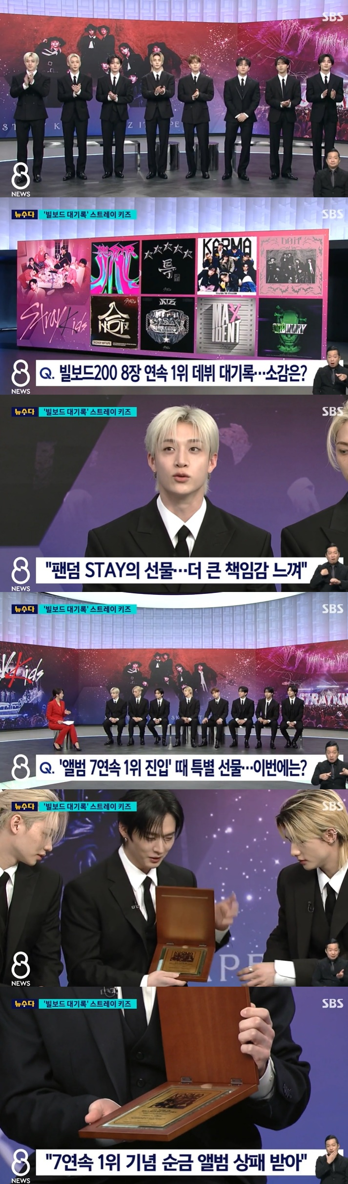 스트레이 키즈는 21일 방송된 'SBS 8뉴스' 인터뷰 코너에 출연, 이현영 앵커와 이야기를 나눴다. 스트레이 키즈 멤버 8명 완전체가 출연하는 방송 인터뷰는 이번이 처음이다.