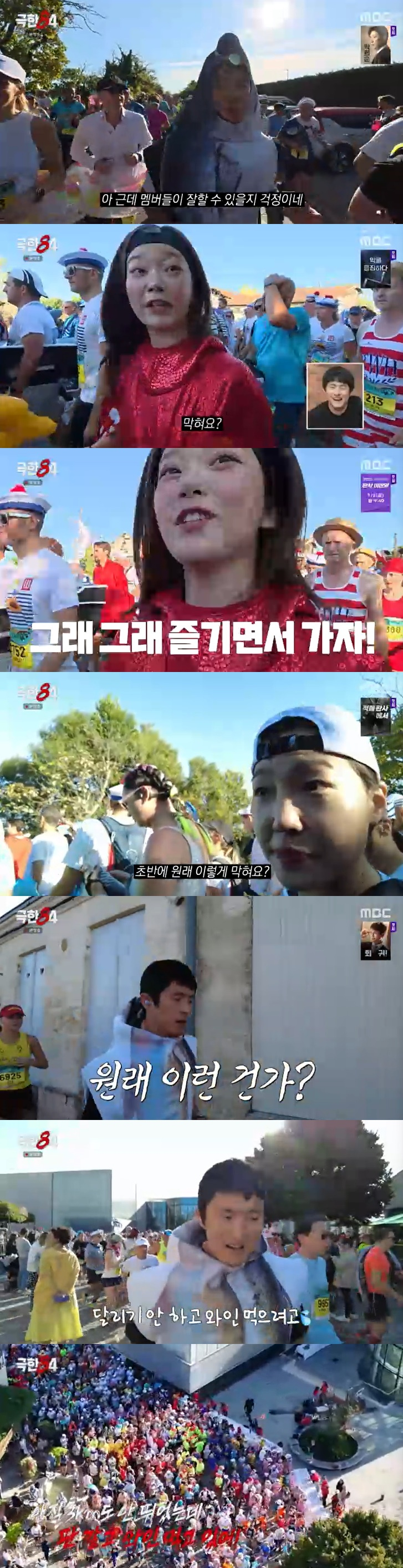 메독 마라톤은 40~50개의 와이너리를 지나야 했고, 와인 음수대들과 스테이크, 굴, 빵, 치즈, 아이스크림 등의 구역이 있었다. 벌써부터 와인 시음이 즐비한 지역 축제 분위기가 형성되자 기안84는 "사람들이 술 먹으러 온 거야? 뛰러 온 거야?"라며 신기해했다.