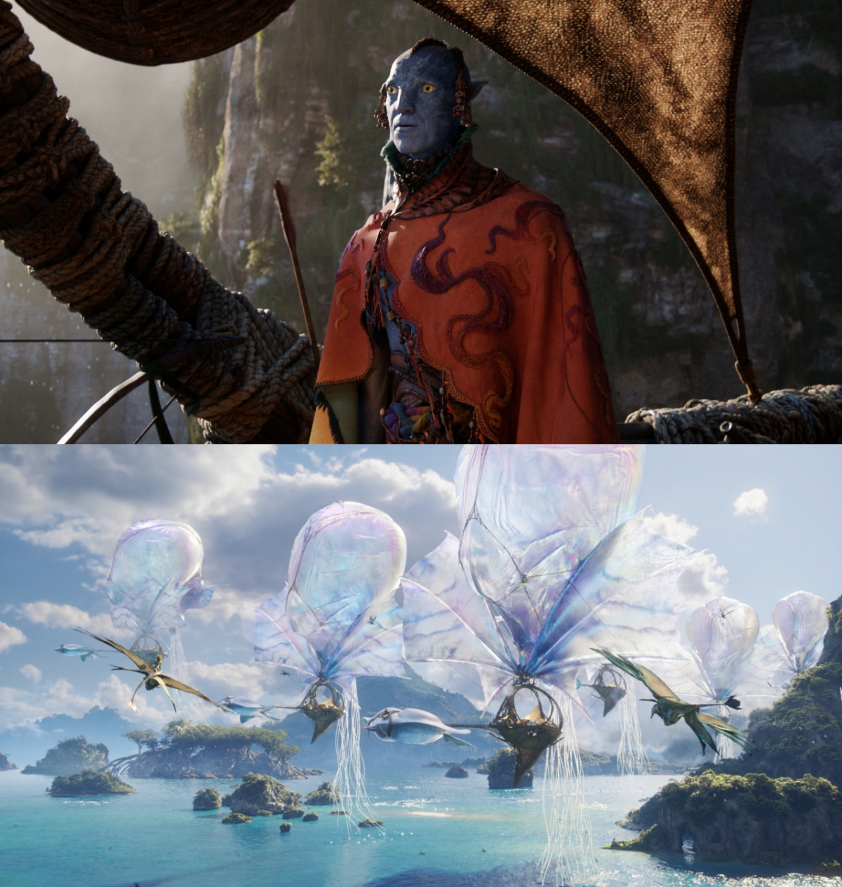 #2000개의 대나무로 만들어진 '바람 상인'의 곤돌라'아바타: 불과 재'에서 새롭게 등장하는 크리처 '윈드레이'와 '메두소이드'는 스크린에 등장과 동시에 전 세계 관객들의 감탄을 자아냈다. 특히 두 크리처가 이끄는 '바람 상인'의 선박과 같은 곤돌라는 거대한 규모와 아름다운 디자인으로 시선을 사로잡는다. 제작진은 대형 범선 형태의 선박을 만들기 위해 2000개의 대나무를 사용했다고 밝히며, 길이 약 128m와 높이 약 188m에 달하는 거대한 곤돌라를 제작했다고 전해 특별함을 더한다.