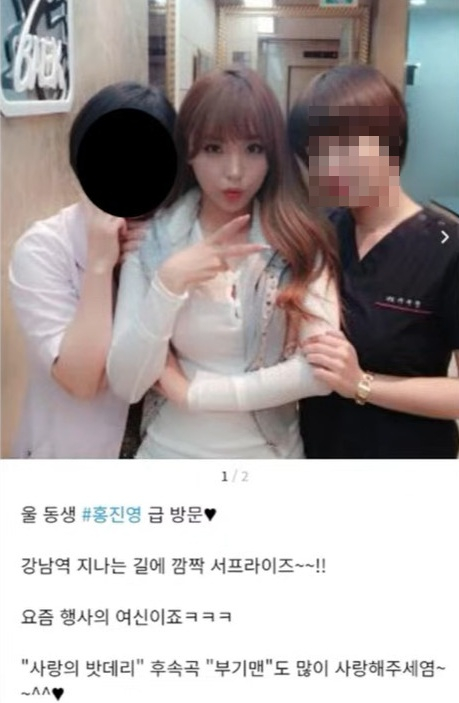 홍진영 씨는 그 동안 가수 활동을 해 오며 여러 경로를 통해 다양한 상품, 브랜드, 병원에서 협찬 인증샷 요청으로 여러 차례의 사진을 촬영해 주었지만, 해당 병원을 방문 촬영한 것은 너무 오래되어 기억할 수 없음을 전해드립니다.