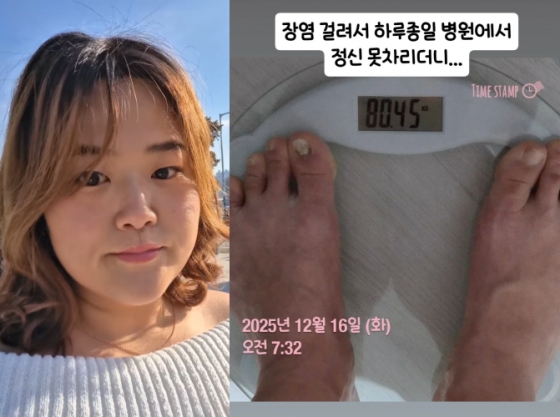 박수지는 23일 "손도 마음도 너무 떨린다...."라며 체중계를 인증했다.
