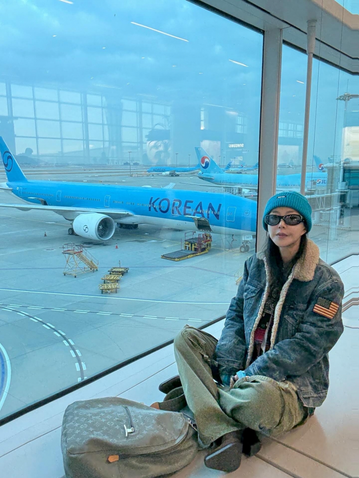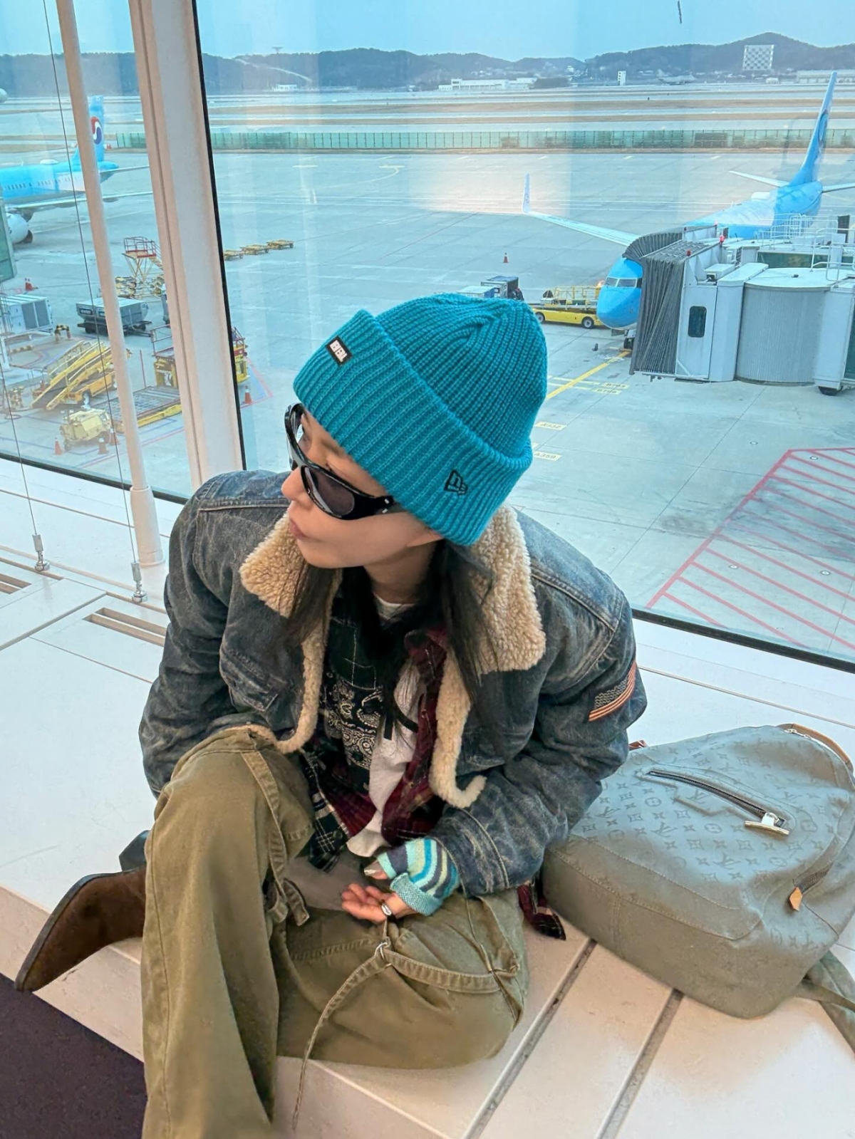 사진 속 슈는 캐주얼한 차림에 비니와 선글라스를 착용하고 공항에서 출국을 기다리고 있었다.