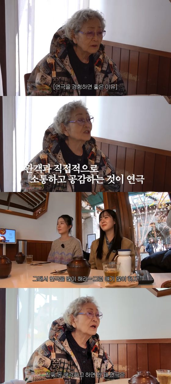 김영옥은 두 사람에게 연극 무대에 대해 "다들 너무 잘하고 있어서 별 걱정은 없지만 계속 연극을 하라는 이유가 있다"고 말문을 열었다.