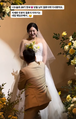 이후 28기 영식은 결혼식 현장 모습을 공개하고 "12월 28일 상철 정숙 행복해라 ㅋㅋㅋ“라고 축하해줬다. 28기 영숙도 "정숙 상철 결혼식에서 오랜만에 만나서 이야기 나누고 왔어요. 다들 보기좋아"라고 밝혔다.