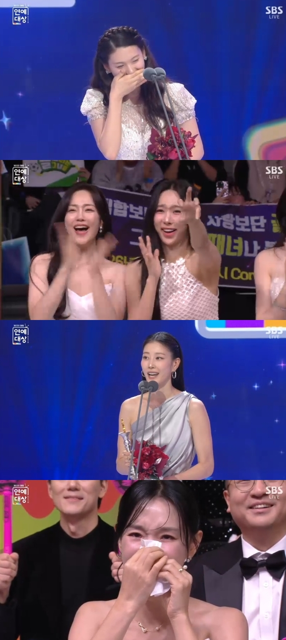 공동 수상자에 이름을 올린 이현이는 "이 상은 제가 받았다기보다 '동상이몽', '골때녀' 제작진분들이 받아야 하는데 제가 대신 받은 거다. 제가 방송인, 모델, 아내, 며느리, 딸 등 여러 가지 역할을 하고 있는데 열심히 잘 해보고자 아등바등 고군분투하면서 살고 있다"라고 진심을 전했다. 이에 '동상이몽'을 함께 출연 중인 이지혜가 눈물을 쏟았다.