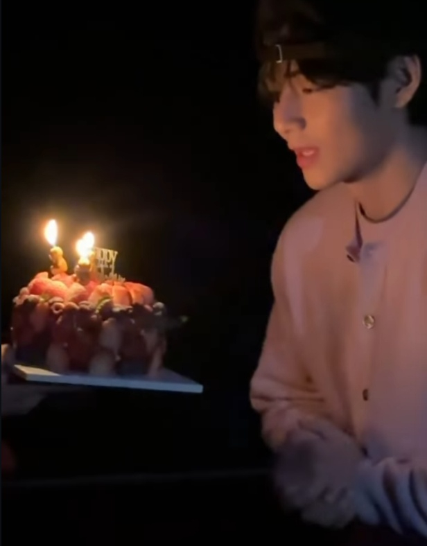 방탄소년단 멤버들은 "생일 축하합니다"라며 노래를 불렀고, 뷔도 이에 맞춰 춤을 추는가 하면 케이크 촛불을 끄며 기뻐하는 모습을 보였다.