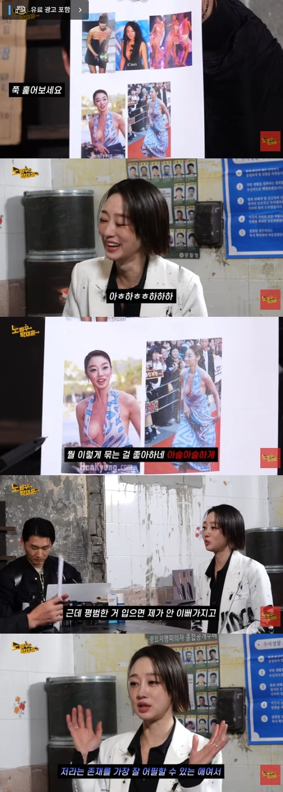 그는 "옷이 내려온 거냐, 입다 만 거냐. 아슬아슬하게 묶는 걸 좋아한다"라고 꼬집더니 "노출이 많은 드레스를 입었을 때 괜찮았냐. 보는 사람도 아슬아슬한데 본인은 얼마나 신경 쓰였겠냐"라고 캐물었다.