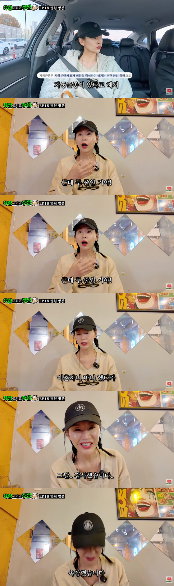 영상에서 서유정은 병원으로 향하며 "올해 건강검진을 받았는데, 산부인과에서 자궁 근종이 있다고 하더라. 검사를 해보니 근종이 생각보다 커서 수술을 해야 될 것 같다"고 말했다.