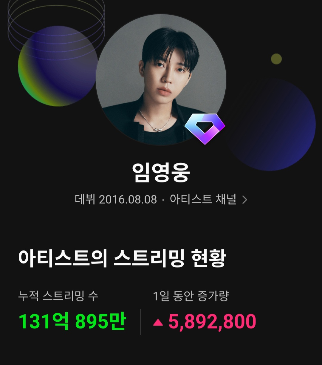 임영웅은 1월 3일 국내 주요 음원 플랫폼 멜론(Melon)에서 누적 스트리밍 131억 회를 넘어섰다. 이날 기준 임영웅의 멜론 누적 스트리밍 수는 131억 895만 회였다.