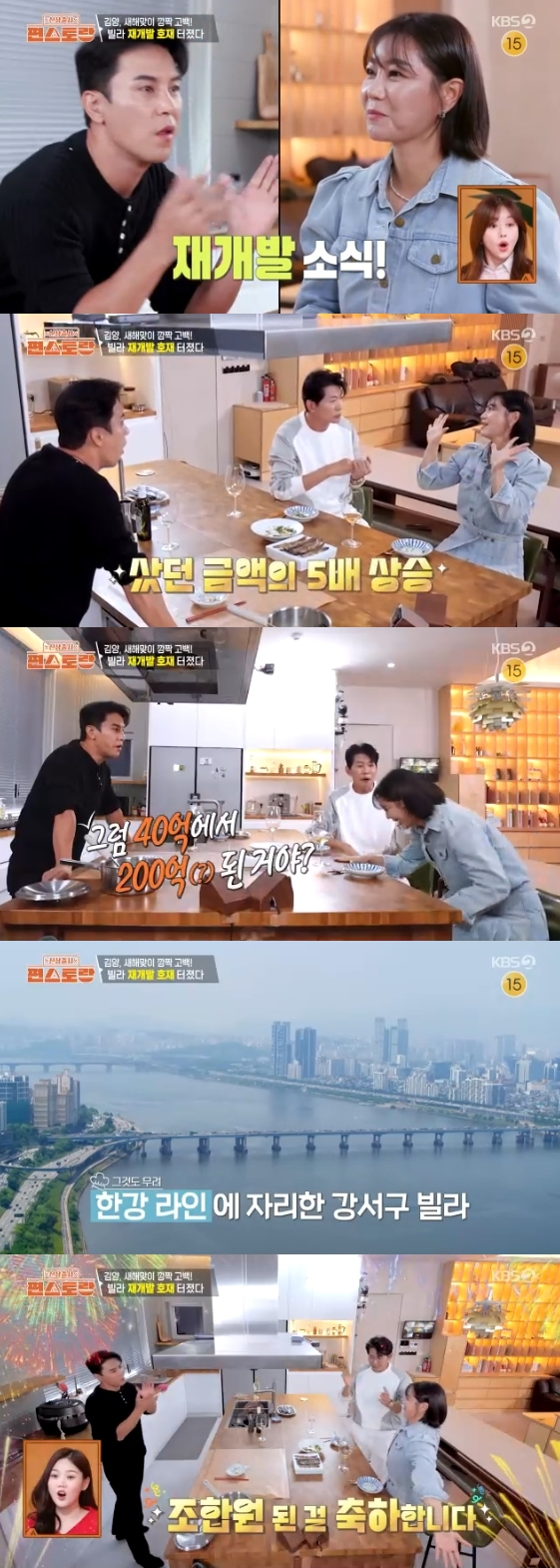 이를 들은 장민호는 "40억에서 200억이 된 거냐. 완전 로또다"라며 너스레를 떨었다. 두 사람은 조합원이 된 김양에게 박수를 치며 진심으로 축하 인사를 건넸다.