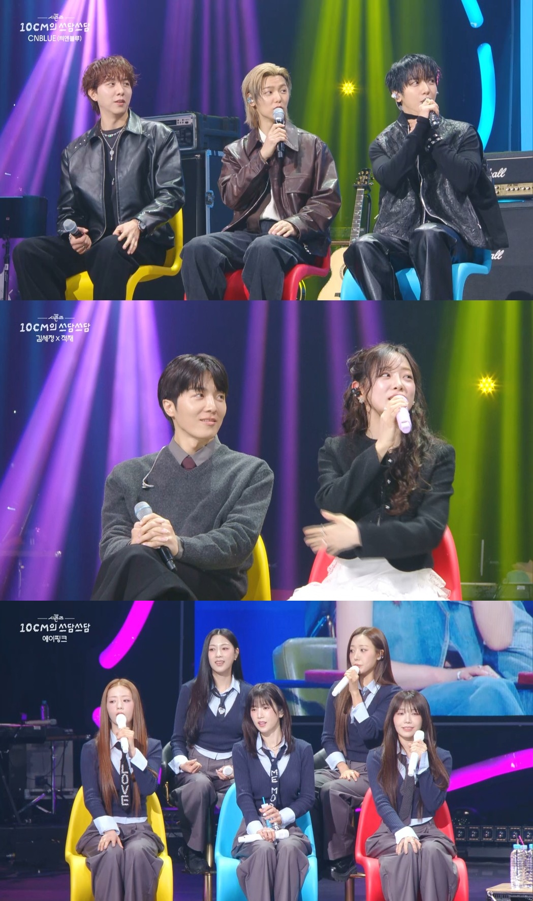 11년 만에 정규 3집으로 돌아온 씨엔블루는 "눈 마주치고 이야기하는 건 처음이라 연예인을 만난 기분"이라며 십센치와의 대면 소감을 전했다. 정용화는 '가요대축제' 당시 화장실에서 십센치를 만났던 기억을 꺼냈고, 십센치는 세면대에서 머리를 감고 있던 정용화의 모습을 구체적으로 묘사해 현장을 웃음으로 물들였다.