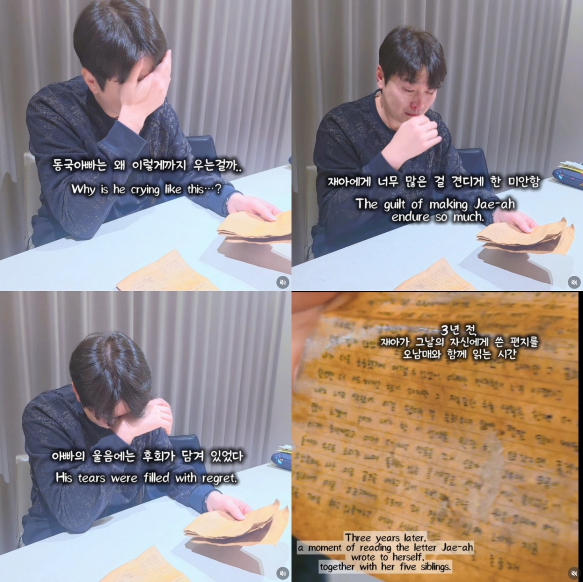 이어 이수진 씨는 "그리고 오늘, 그 편지를 꺼내 가족과 함께 읽었습니다. 아빠도 울고, 오남매 모두 울었습니다. 나는 눈물을 흘리며 카메라를 들고 이 순간을 기록했습니다"라고 덧붙였다.