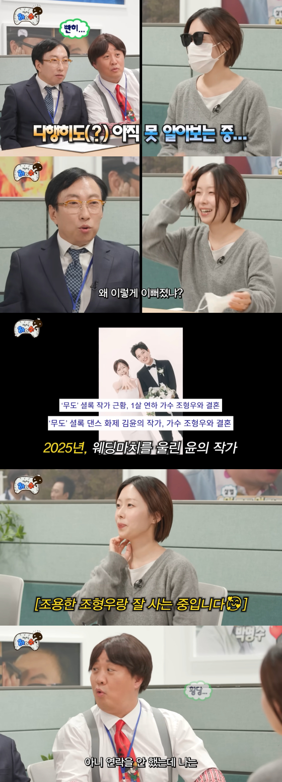 이에 정준하가 "우리는 왜 결혼식 안 불렀냐"고 묻자 김윤의 작가는 "결혼식 왜 안 오셨냐"고 되레 되묻는 예능감을 발휘했다.