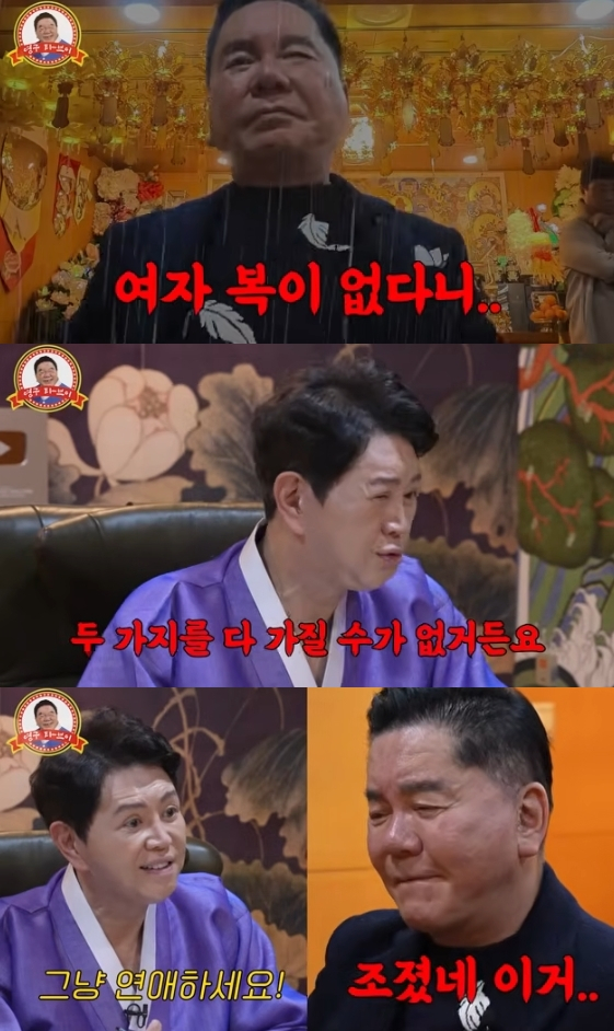 코미디언 심형래가 여자 복이 없다는 점사에 크게 실망했다. 13일 공개된 유튜브 채널 '영구TV'에는 '[심형래 점사] 평생 혼자 살게 생겼습니다'라는 제목의 동영상이 게재됐다.
