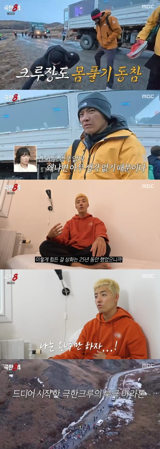 가수 겸 방송인 강남이 북극 마라톤을 앞두고 아내 이상화를 떠올렸다. 18일 방송된 MBC 예능 프로그램 '극한84'에는 북극 폴라서클 마라톤을 시작한 '극한크루' 기안84, 권화운, 강남의 모습이 그려졌다.