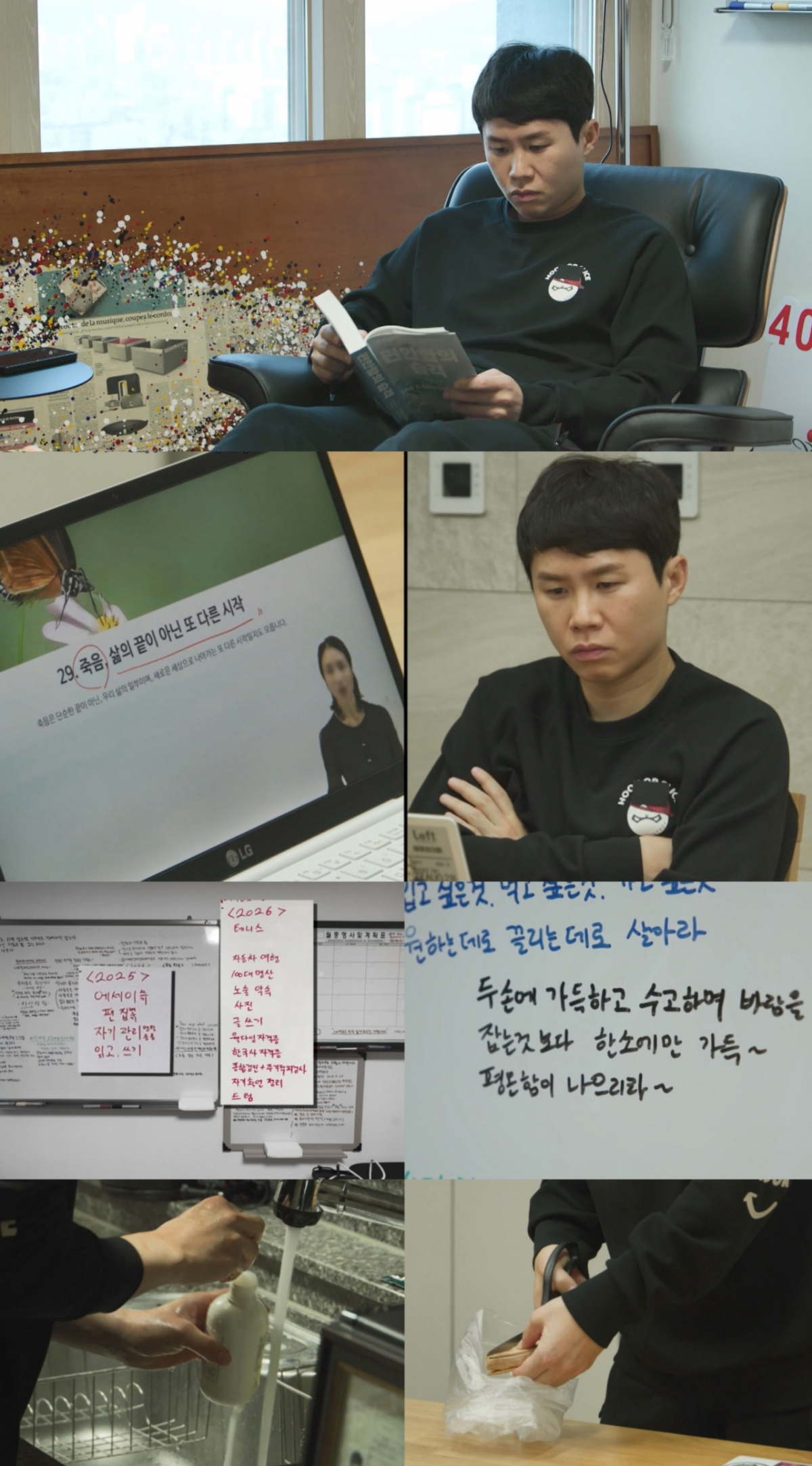 이외에도 새해 목표 중 하나인 웰다잉 지도사 자격증 공부를 위해 온라인 강의를 보며 진지하게 수업 내용을 필기하는 등 자기 계발에 진심인 모습을 보여준다.