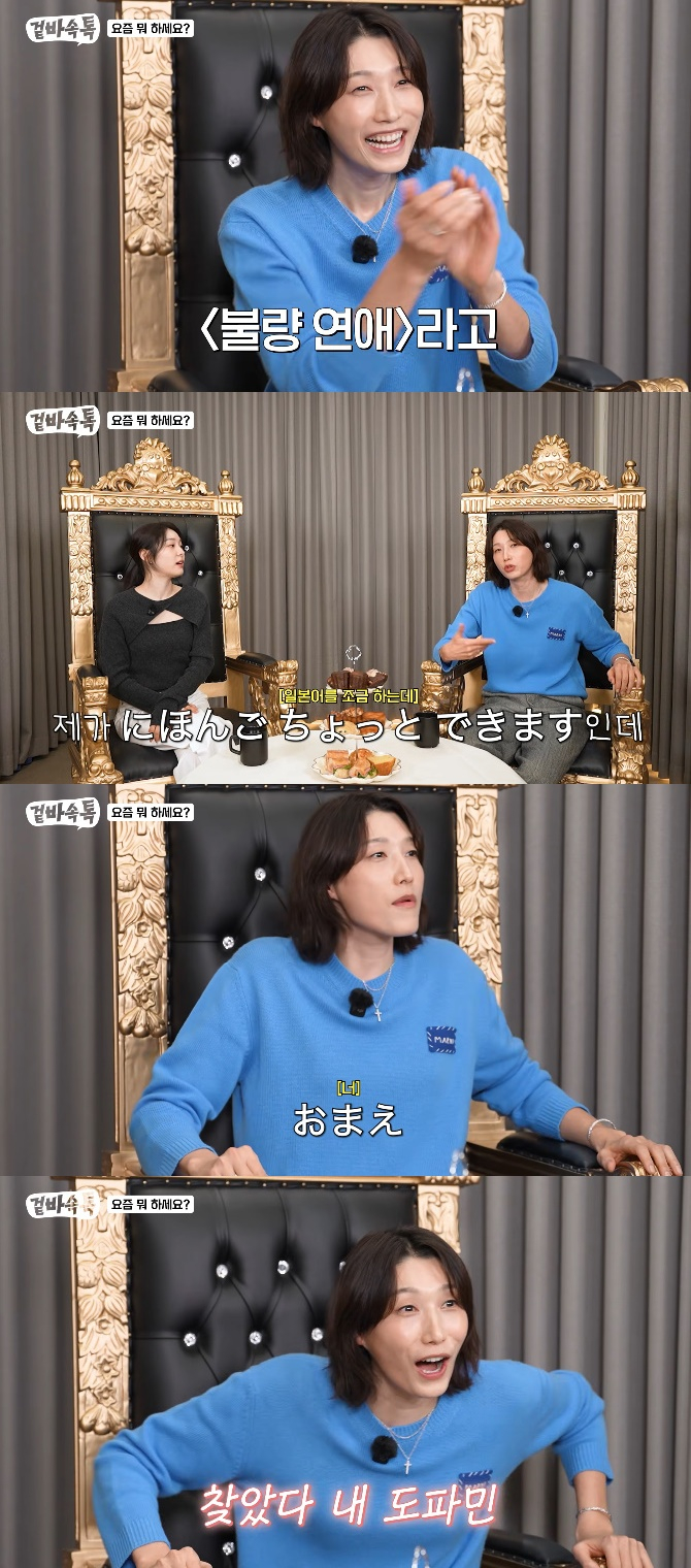 김연경은 "나 요즘 '불량연애' 본다. 순위에 있어서 볼까말까 하다가 봤는데 내가 일본말을 좀 하니까 더 재미있더라. 그게 지금 이슈가 엄청 됐다"라고 말했다.