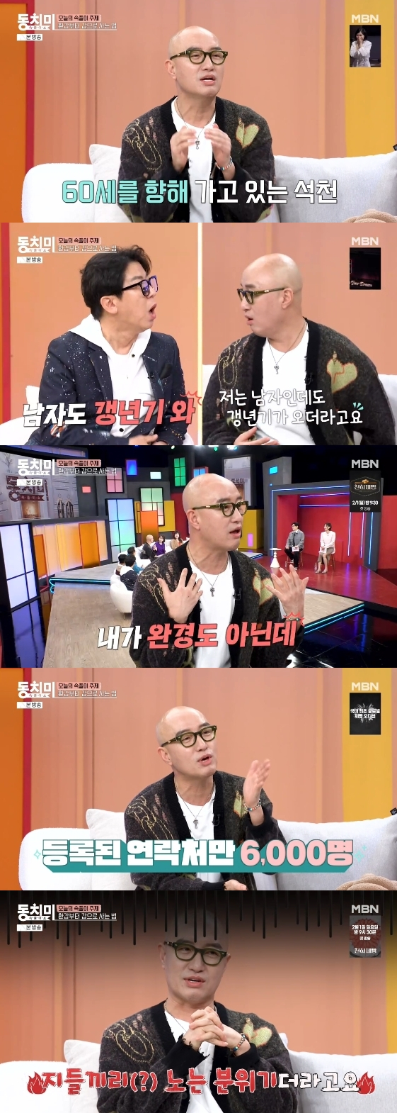 방송인 홍석천이 갱년기 증상을 호소했다. 24일 방송된 MBN 예능 프로그램 '속풀이쇼 동치미'는 '환갑부터 갑으로 사는 법'이라는 주제로 꾸며진 가운데 홍석천이 게스트로 출연해 근황을 전했다.