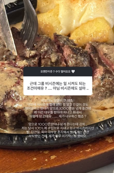 김지연은 생활비로 1000만원 준다는 것과 관련, "그건 올해 연봉이 올랐으니 앞으로 그렇게 주겠다는 말이었고 대신 본인한테 아무것도 시키지 않는 조건 그리고 월급 안 들어오는 비시즌 몇 개월 동안은 10개월간 줬던 생활비에서 모은 돈, 제 수입으로 지내야 한다고 했다. 근데 사실 이미 매년 12월부터 2월 말 전까지 100% 제 수입으로 지냈다. 이때까지 당연히 생활비를 받긴 했지만 1,000만 원씩 받은 적은 없다. 많이 효자라 시댁에 연봉의 대부분을 보내줘 제가 혼수랑 아이 용품 다 마련하고 만삭 때까지 일하고 출산 후 주일 만에 조리원에서 행사장 갔다"라고 설명했다.