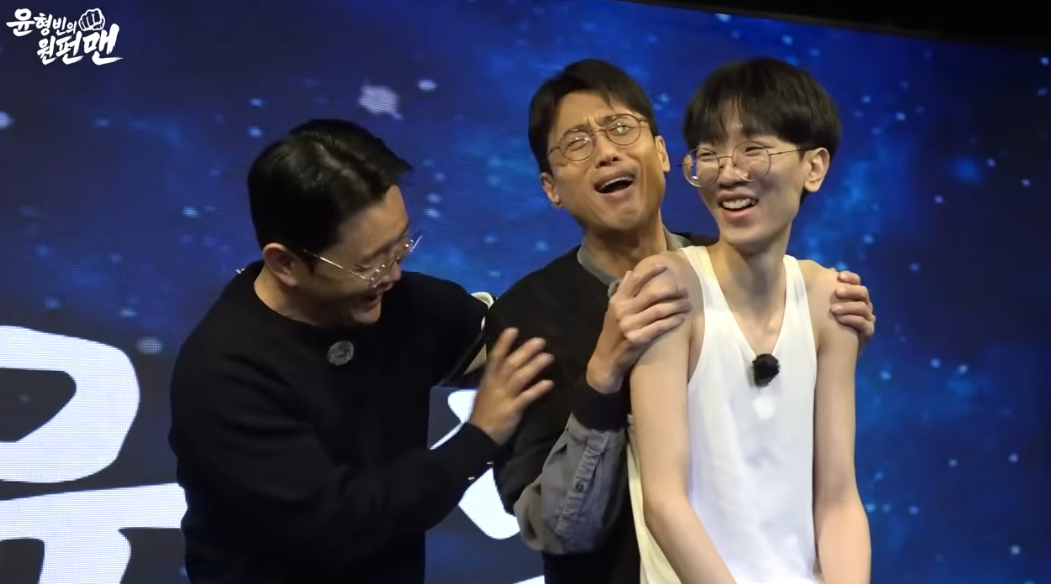 영상에서 이윤석은 이희태를 바라보며 "아이고, 안쓰러워라. 이렇게 뼈말라서 어떻게 하냐. 춥지 않냐"라며 "우리 같은 체형도 이제 잘돼야 한다. TV를 보면 잘 먹고 풍채 좋은 분들만 나온다. 우리도 솟아 올라야 한다"라고 말했다.