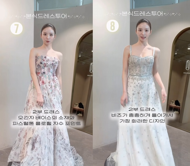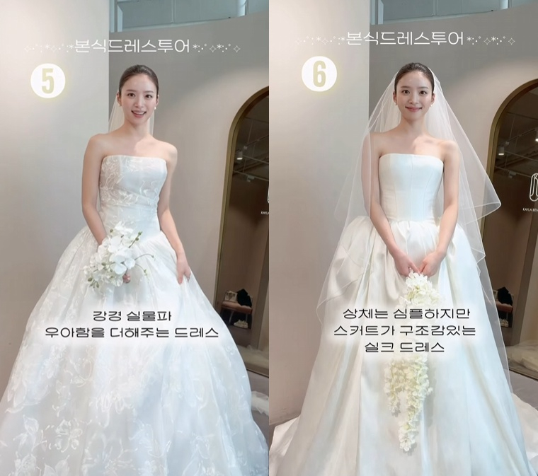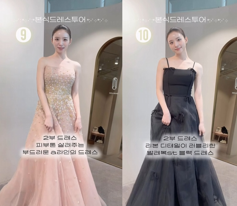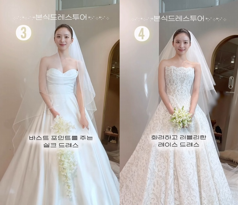 김지영은 30일 자신의 결혼식 본식에 입을 웨딩드레스 후보들을 공개했다.