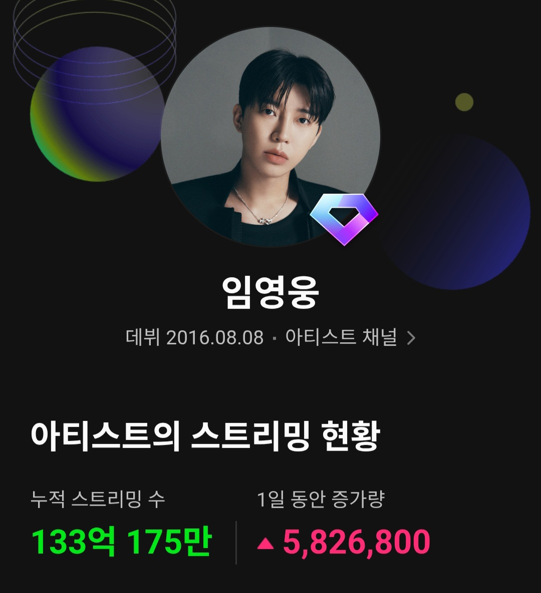 가수 임영웅이 국내 최대 음원 플랫폼 멜론에서 누적 스트리밍 133억 회를 돌파하며 솔로 가수로서 신기록을 세웠다. 임영웅은 2월 5일 기준 멜론 누적 스트리밍 수는 133억 175만 회를 기록했다. 이는 지난 1월 20일 132억 회를 달성한 지 약 16일 만에 거둔 성과다. 임영웅은 매일 폭발적인 스트리밍 수치를 기록하며 인기를 입증했다.