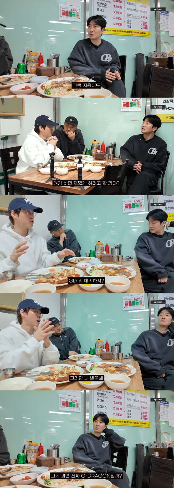 힙합 그룹 에픽하이 타블로와 투컷이 지드래곤을 놓고 설전을 벌였다.5일 에픽하이 유튜브 채널에는 멤버 투컷, 타블로, 미쓰라가 식당을 찾아 이야기 나누는 모습의 영상이 공개됐다.