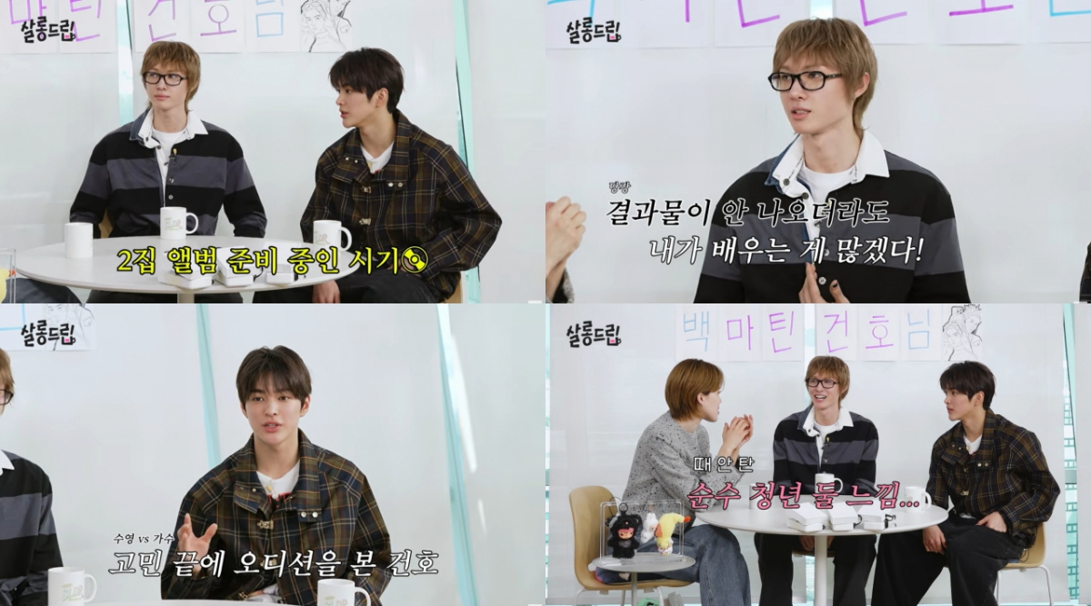 마틴과 건호는 지난 10일 유튜브 채널 TEO의 인기 프로그램 '살롱드립'에 출연했다. 두 멤버는 팀의 히트곡 'GO!' 안무를 추며 패기 넘치게 등장했지만 떨리는 마음을 감추지 못했다. 음료수 한 모금도 조심스럽게 마시고, 자기소개를 해달라는 말에 일어선 채 90도로 인사하는 등 신인다운 면모가 돋보였다.