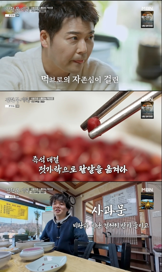 두 사람은 1분 동안 젓가락으로 팥알을 옮기는 대결에 나섰고, 그 결과 전현무가 6알, 곽튜브가 4알을 옮겨 전현무가 승리를 거뒀다. 패배한 곽튜브는 "비판과 비난을 겸허히 받아들이고 젓가락질 연습을 많이 하겠다"라고 사과문을 낭독해 웃음을 안겼다.