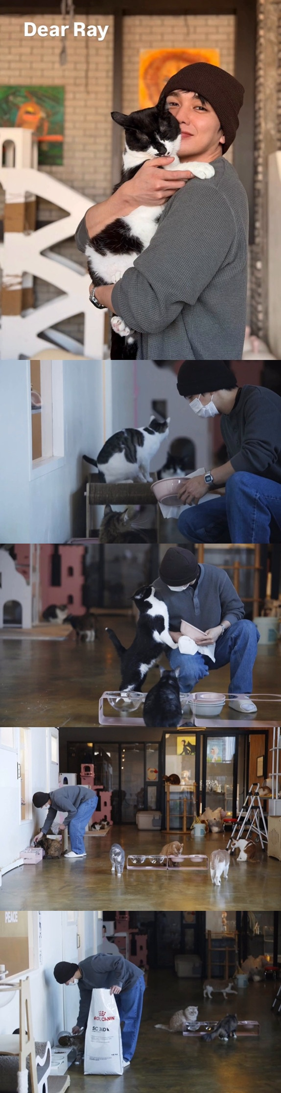 함께 공개한 사진엔 유승호가 유기묘들과 교감하는 따뜻한 면모와, 청소에 열중하는 모습이 담겼다.