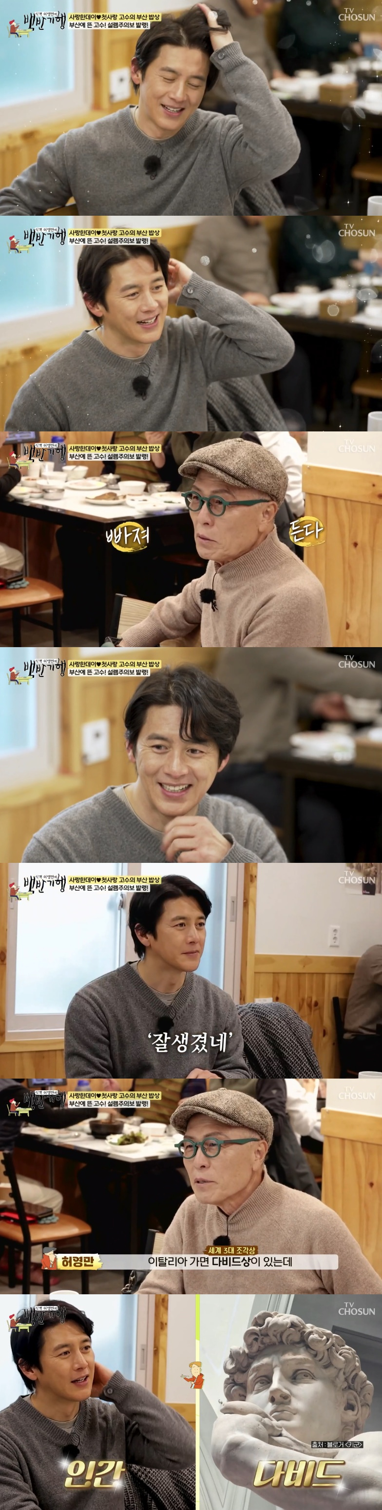 고수는 "아이고"라면서 "평소에는 옆에서 '너 착하다', '잘생겼다'란 얘기 안 하지 않습니까"라며 머쓱해했고, 허영만은 "착하게도 생겼다"라며 웃었다.