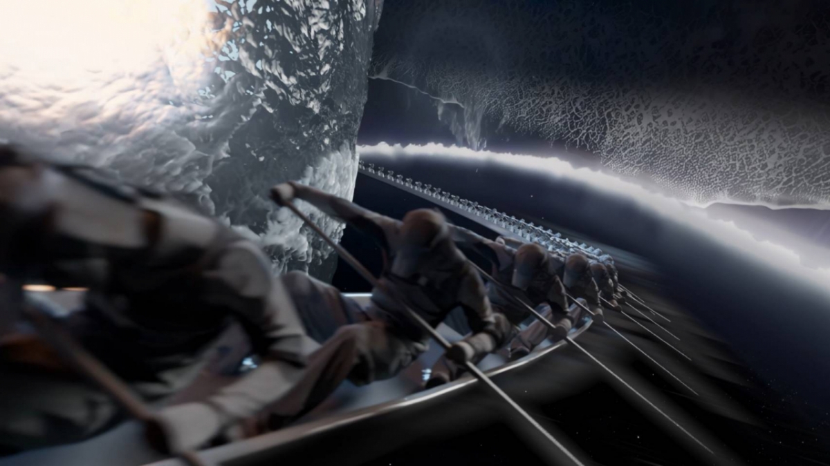 범우주적 스케일이 압권이다. 멤버들이 바다와 육지, 하늘을 넘어 우주로 향하는 항해를 준비하는 듯한 과정이 감각적인 영상미로 펼쳐졌다. 한 자리에 모여 교차된 노를 움켜쥐는 모습에서는 어떤 결연한 의지마저 엿보인다.
