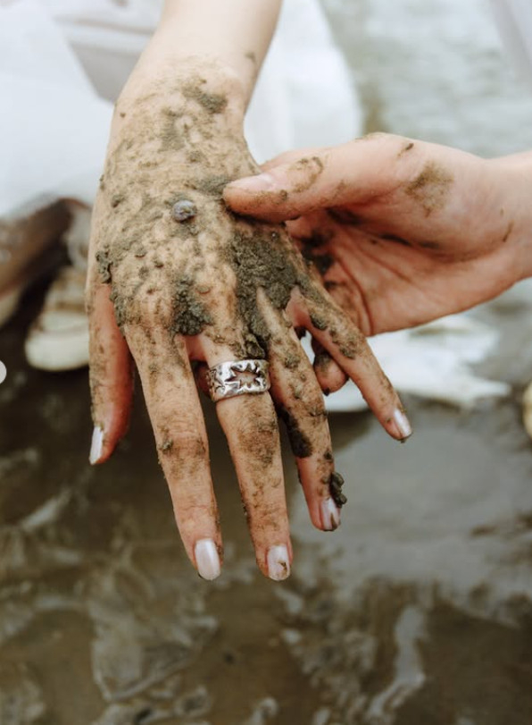 공개된 사진 속 김한주는 갯벌에서 웨딩드레스를 입은 연인과 함께 팔짱을 끼고 있다. 두 사람의 웨딩 화보는 독특한 콘셉트로 이목을 사로잡는다.