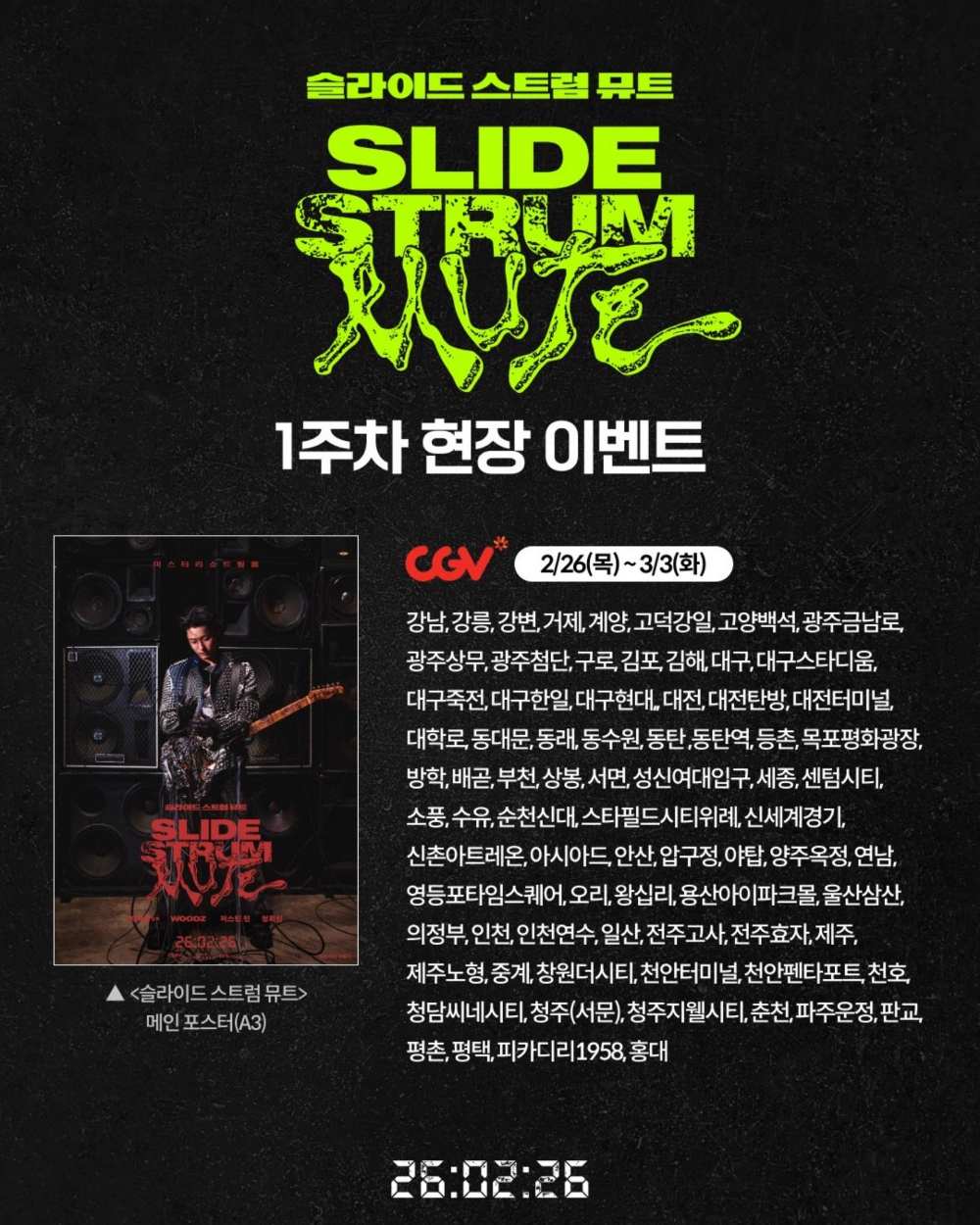 '슬라이드 스트럼 뮤트'는 2월 26일부터 전국 CGV와 주요 예술극장에서 상영한다.