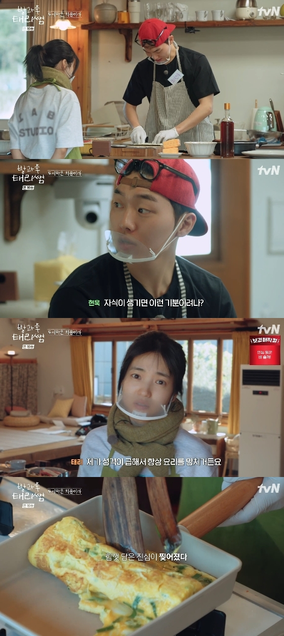 같은 시각 계란말이에 도전한 김태리는 카메라를 향해 "사실 정말 무섭다. 계란말이에 성공한 적이 없다"라고 독백했다. 이어 "제가 성격이 급해서 요리를 망친다. 제가 잘하는 요리는 따로 있다. 급한 마음에도 잘되는 요리들. 근데 이건 느긋한 마음이 필요하다. 그래서 잘못한다"라고 넋두리했다.