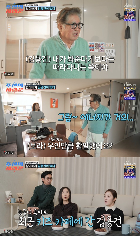 배우 김용건의 늦둥이 아들 근황이 전해졌다.2일 방송된 TV조선 예능 프로그램 '조선의 사랑꾼'에는 며느리 황보라 집에 방문한 김용건의 모습이 그려졌다.