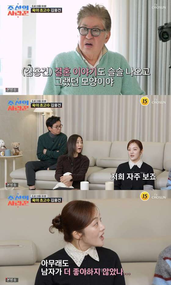 김용건은 손자를 돌보며 육아에 능숙한 모습을 보였다.이를 보던 제작진이 "하정우도 아기 많이 좋아하냐"고 묻자 김용건은 최근 화제가 된 아들 하정우의 결혼설에 대해 언급했다. 그는 "(하정우가) 아기를 좋아한다. 그래서 결혼 얘기도 슬슬 나왔나 보더라"라고 말했다.