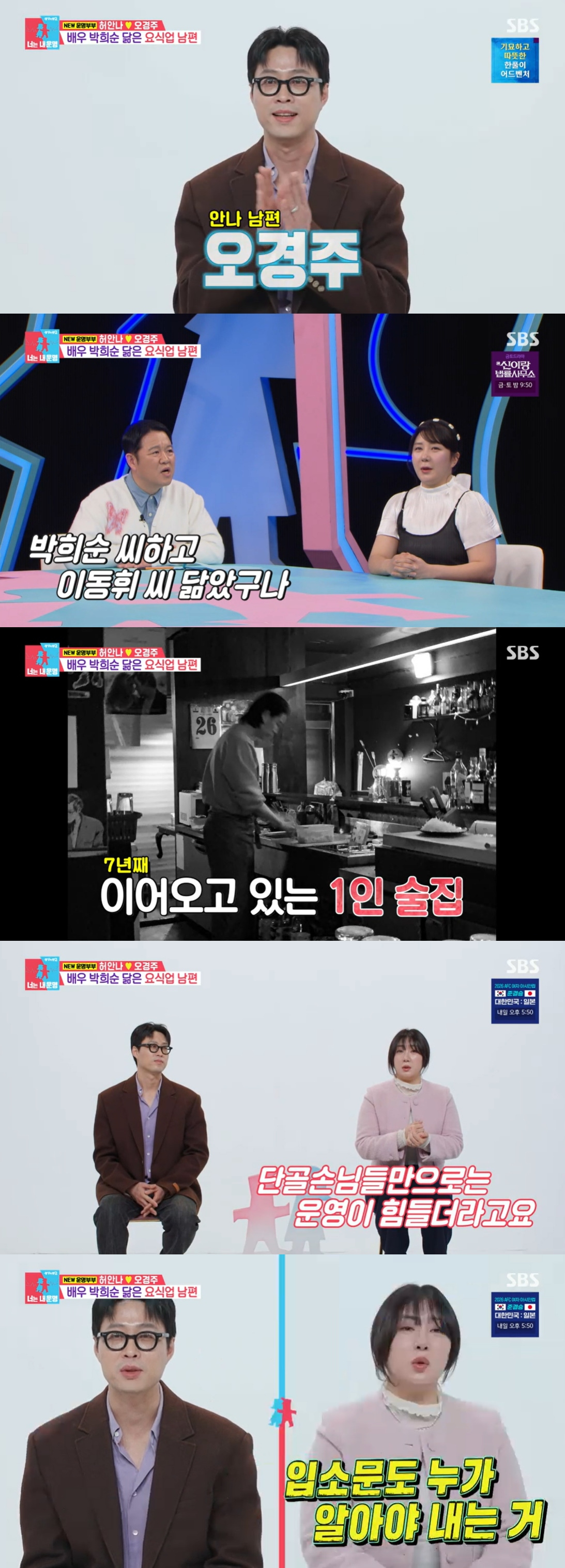 17일 오후 방송된 SBS '동상이몽 2-너는 내 운명'에서는 훈남 남편 오경주와 새로운 운명부부로 합류하는 허안나의 모습이 그려졌다.